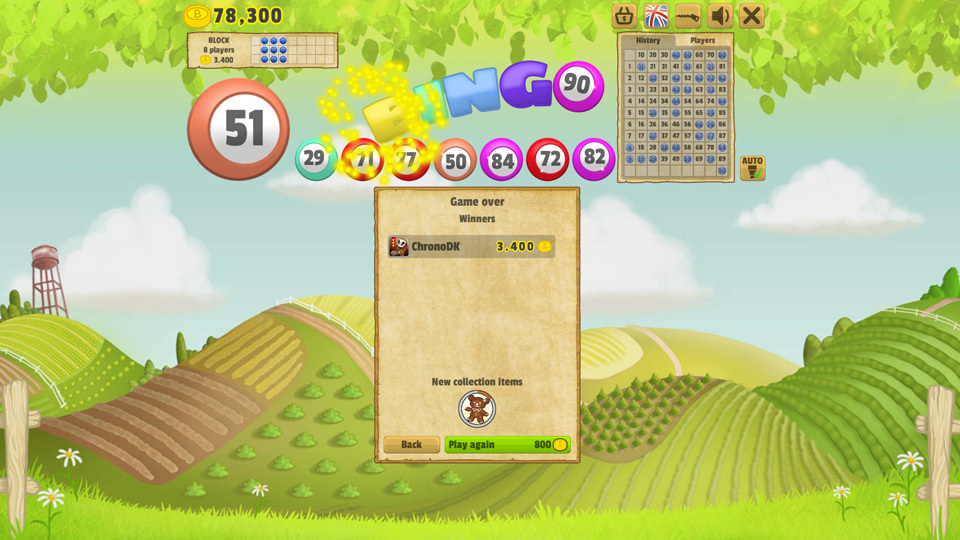 Elke kamer heeft zijn eigen winstpatronen en de ronde begint zodra de eerste speler meedoet. Als je een kamer binnengaat die al begonnen is, worden de eerder getrokken nummers automatisch gemarkeerd. In sommige gevallen zul je het geluk hebben een kaart te krijgen waar al BINGO op staat, omdat alle nummers die je nodig hebt al getrokken zijn voordat je arriveerde.